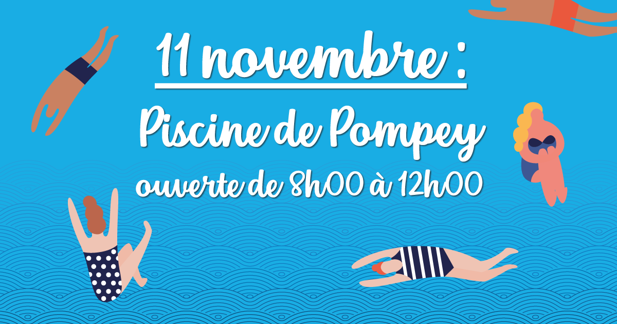 La piscine de Pompey vous accueillera ce jeudi 11 novembre de 8h00 à 12h00.