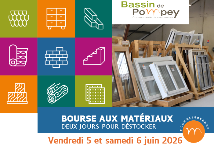 Bassin de Pompey vous invite à participer à sa deuxième édition de la Bourse aux Matériaux les 5 et 6 juin 2026