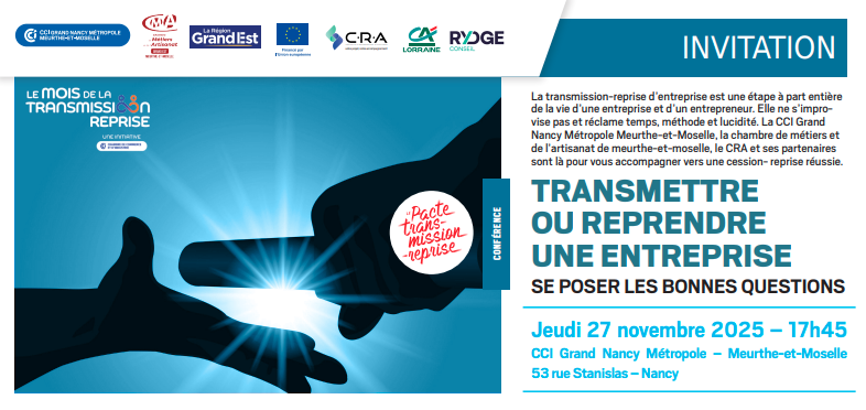 Lien d'inscription : Conférence “Transmettre ou reprendre une entreprise : se poser les bonnes questions”